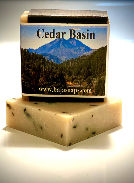 An Invigorating Outdoors Retreat of Fresh Cut Cedar • Cold Press • Cold Process • Handmade in the USA • All Natural • Quality Ingreadients • No Parabens • No Phlalates • No SLS • No Mineral Oil -